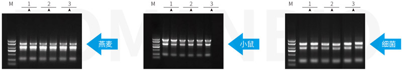 操作可視化:溶液呈粉紅色,便于分離水相和有機相。  以上參考圖分別取50mg燕麥葉片,20mg小鼠肝臟和1ml細菌DH5α菌液各數(shù)份,組織進行液氮研磨處理,菌液離心收集細胞后,分別加入1ml Zomanbio RNApure 和 T、I公司相應產(chǎn)品,按各自說明書進行RNA提取。洗脫體積分別為80μl、100μl、60μl。RNA電泳上樣量分別為5μl,1%瓊脂糖凝膠電泳。