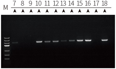 ![]() | M:MakerⅢ(ZOMANBIO) 7-8:T公司酶直接鑒定結(jié)果 9:T公司酶陰性對照 10:T公司酶陽性對照 11-12:B公司鑒定試劑盒鑒定結(jié)果 13:B公司鑒定試劑盒陰性對照 14:B公司鑒定試劑盒陽性對照 15-16:本公司ZC221A鑒定結(jié)果 17:本公司ZC221A陰性對照 18:本公司ZC221A陽性對照 |