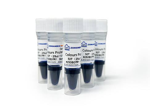 本產(chǎn)品由10-180 kDa的10種純化的天然蛋白混合而成,其中70 kDa為橙紅色蛋白條帶,10 kDa為綠色蛋白條,方便判斷各個(gè)條帶的準(zhǔn)確位置。產(chǎn)品適合作為SDS-PAGE電泳時(shí)變性蛋白樣品的分子量參照,并可實(shí)時(shí)觀察蛋白樣品的電泳分離狀況,也可用于檢測(cè)Western blot的轉(zhuǎn)膜效率。由于共價(jià)結(jié)合的染料會(huì)影響蛋白質(zhì)分子的電泳遷移率,本產(chǎn)品僅適于粗略地估計(jì)目的蛋白樣品的分子量。
