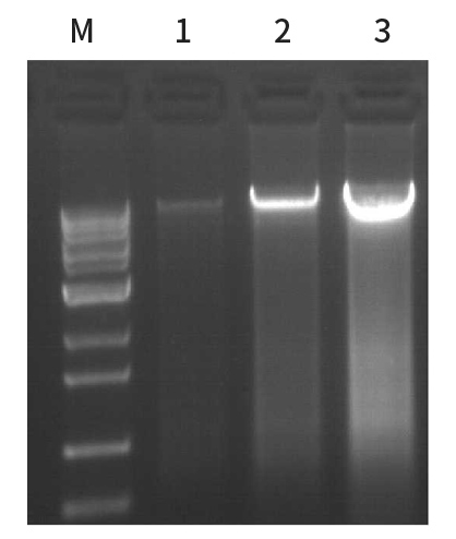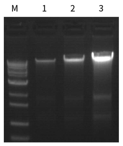 1%瓊脂糖凝膠電泳,5v/cm 電泳15 min,上樣量:2ul。