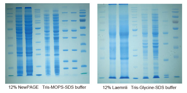 注:本產(chǎn)品使用Tris-MOPS-SDS緩沖液或Tris-MES-SDS緩沖液,不適合用Tris-甘氨酸-SDS緩沖液電泳。