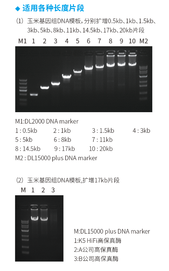 ★ 強大延伸:質(zhì)粒、λDNA 等常規(guī)模板有效擴增達(dá)40kb,cDNA有效擴增達(dá)10kb,基因組有效擴增達(dá)20kb。
