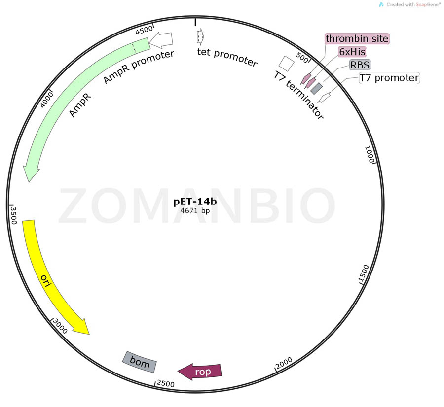 產(chǎn)品名稱:pET-14b質(zhì)粒