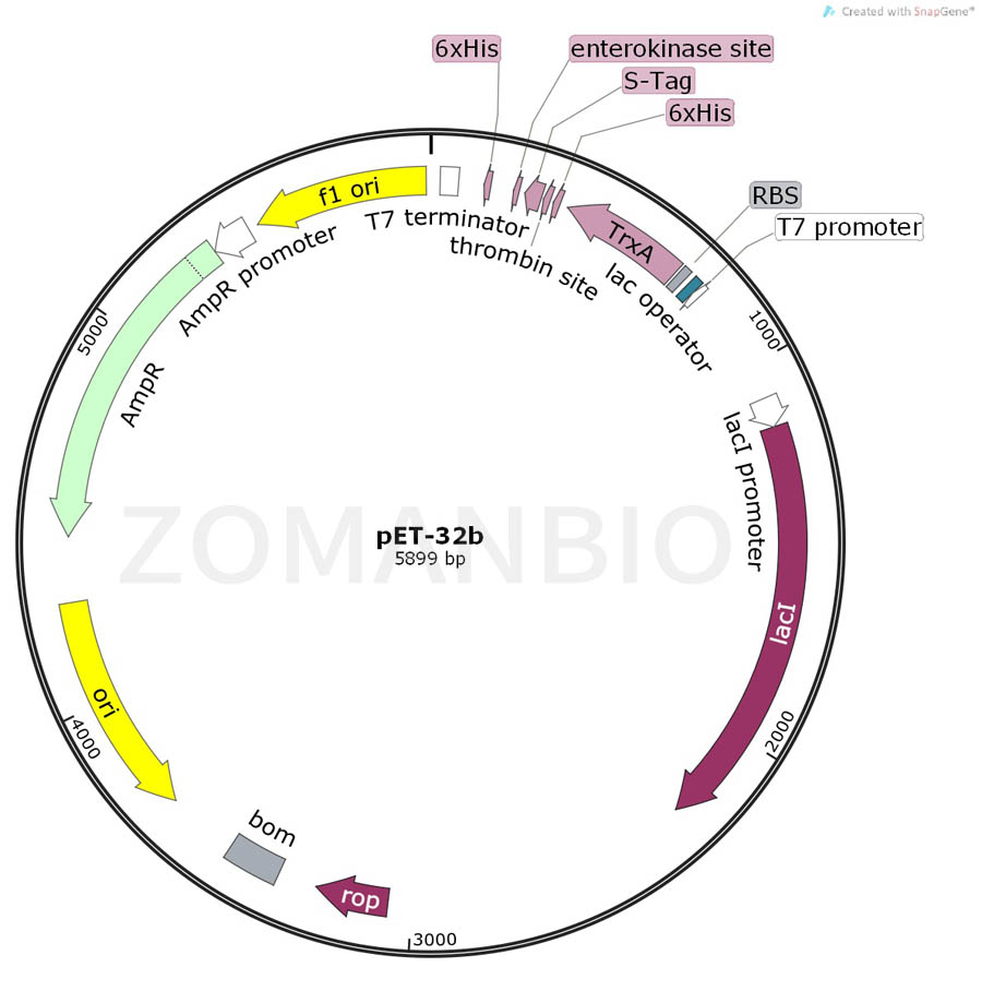 質(zhì)粒標簽: | N-Trx,N-6×His,N-thrombin,N-S,N-enterokinase,C-6×His |