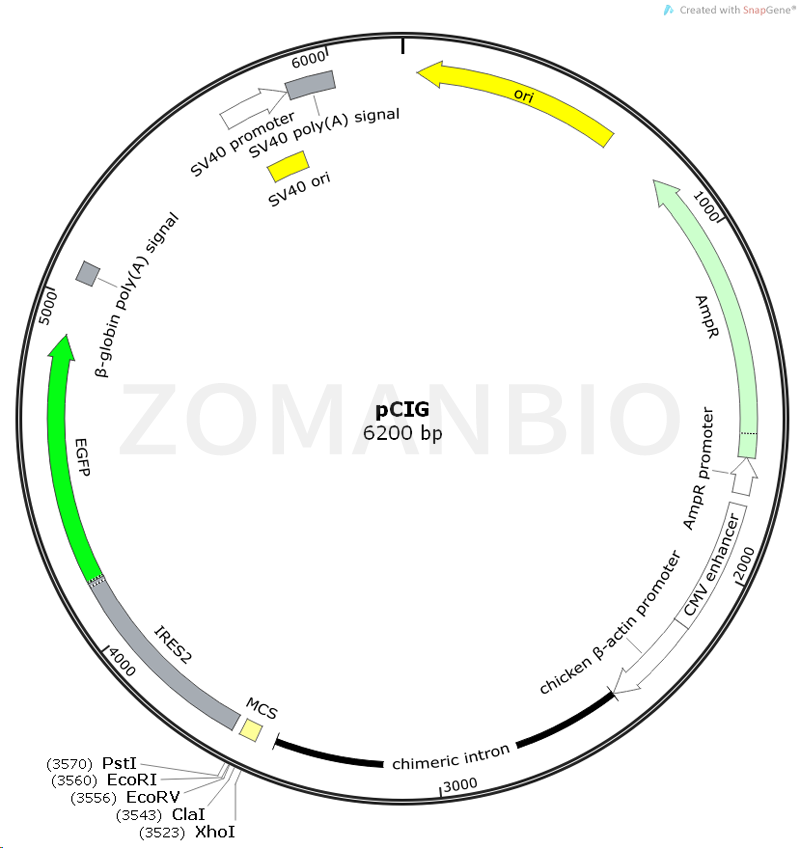 pCIG質(zhì)粒是一個(gè)哺乳細(xì)胞過(guò)表達(dá)載體,CAG啟動(dòng)子驅(qū)動(dòng)目的基因的表達(dá)。 質(zhì)粒只保證關(guān)鍵序列正確,不保證表達(dá)效果。