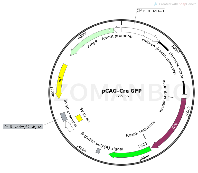 質(zhì)粒序列請下載:ZK580pCAG-CreGFP同源重組質(zhì)粒.txt